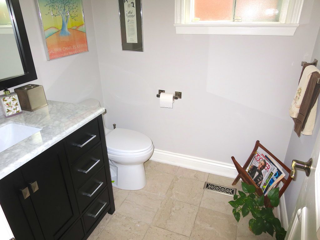 POWDER RM RENOVATION (NEW VANITY, MIRROR, TOILET, FAUCET) – AFTER PHOTOS 2/6