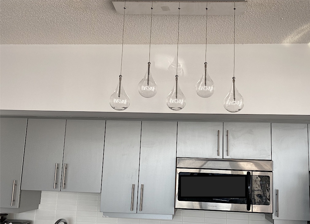 PROJECT REDPATH LIVING RM HIGH CONTRAST CONDO – AFTER PHOTO 1/2 LIGHTING INSTALLATION & PAINTED CABINETS – KITCHEN CONCEPT AFTER PHOTO 2/2